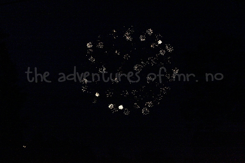 Finally the fireworks began. I wasn't sure how Mr. No would react. He loved them! He did get a little fidgety and want to go inside right near the end but it was getting late. He switched from Nana's lap to mine just in time for the finale. He's been talking about them ever since. Not sure how he'd do closer to them but maybe it's worth a try.